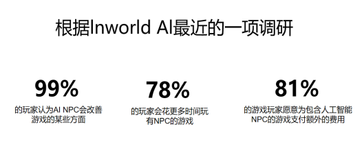 最后,人工智能可以讓游戲中出現(xiàn)更多更好的非玩家角色(NPC),從而通過讓游戲環(huán)境更具沉浸感來提高玩家滿意度。根據(jù)InworldAI最近的一項(xiàng)調(diào)查,99%的玩家認(rèn)為基于人工智能的NPC會(huì)改善游戲玩法的某些方面,78%的玩家會(huì)花更多時(shí)間玩有人工智能NPC的游戲,81%的玩家愿意為有人工智能NPC的游戲支付額外費(fèi)用。